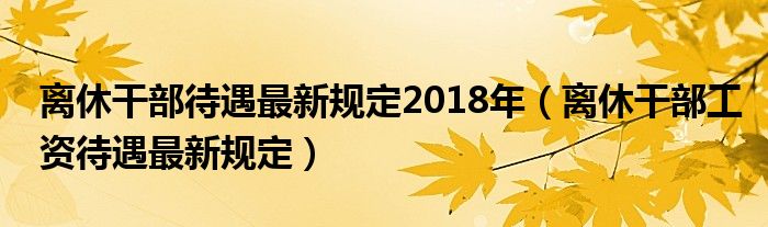 关于离休干部待遇最新规定2018年,离休干部工资待遇最新规定这个很多人还不知道,今天菲菲来为大家解答以上的问题,现在让我们一起来看看吧!