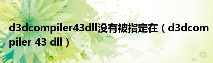 大家好,慧慧来为大家解答以上问题,d3dcompiler43dll没有被指定在,d3dcompiler 43 dll很多人还不知道,现在让我们一起来看看吧!
