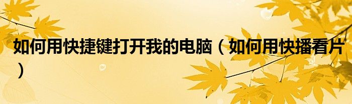 大家好,慧慧来为大家解答以上问题,如何用快捷键打开我的电脑,如何用快播看片很多人还不知道,现在让我们一起来看看吧!