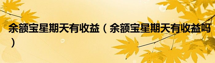大家好,慧慧来为大家解答以上问题,余额宝星期天有收益,余额宝星期天有收益吗很多人还不知道,现在让我们一起来看看吧!