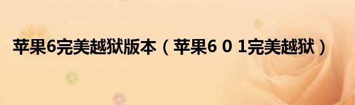 大家好,慧慧来为大家解答以上问题,苹果6完美越狱版本,苹果6 0 1完美越狱很多人还不知道,现在让我们一起来看看吧!