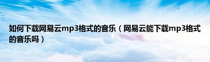 大家好,跳跳为你解答以上问题。如何下载网易云mp3格式的音乐,网易云能下载mp3格式的音乐吗这个问题很多人还不知道,现在让我们一起来看看吧!