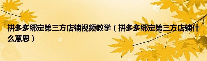 大家好,跳跳为你解答以上问题。拼多多绑定第三方店铺视频教学,拼多多绑定第三方店铺什么意思这个问题很多人还不知道,现在让我们一起来看看吧!