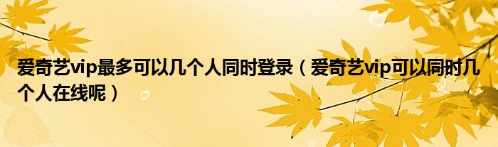 大家好,跳跳为你解答以上问题。爱奇艺vip最多可以几个人同时登录,爱奇艺vip可以同时几个人在线呢这个问题很多人还不知道,现在让我们一起来看看吧!