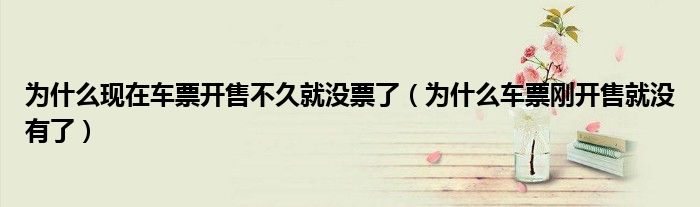 大家好,跳跳为你解答以上问题。为什么现在车票开售不久就没票了,为什么车票刚开售就没有了这个问题很多人还不知道,现在让我们一起来看看吧!