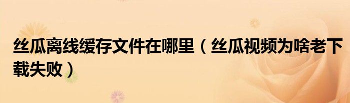 丝瓜离线缓存文件在哪里(丝瓜视频为啥老下载失败)