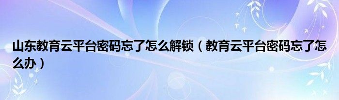 大家好,跳跳为你解答以上问题。山东教育云平台密码忘了怎么解锁,教育云平台密码忘了怎么办这个问题很多人还不知道,现在让我们一起来看看吧!