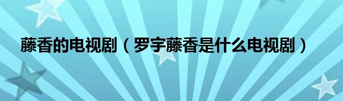藤香的电视剧(罗宇藤香是什么电视剧)