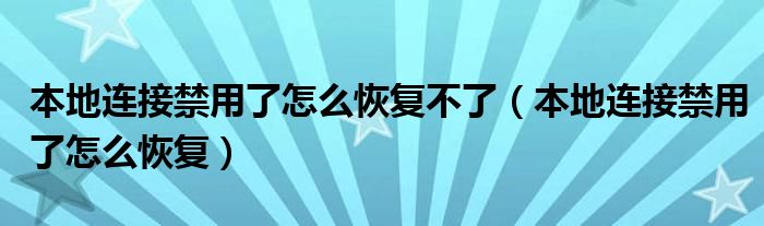 大家好,小晋来为大家解答以下问题,关于本地连接禁用了怎么恢复不了,本地连接禁用了怎么恢复很多人还不知道,今天让我们一起来看看吧!