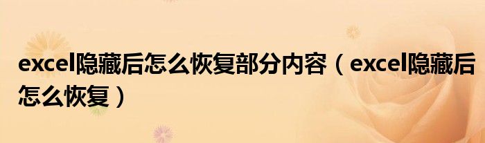 大家好,小晋来为大家解答以下问题,关于excel隐藏后怎么恢复部分内容,excel隐藏后怎么恢复很多人还不知道,今天让我们一起来看看吧!