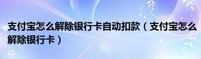 大家好,小晋来为大家解答以下问题,关于支付宝怎么解除银行卡自动扣款,支付宝怎么解除银行卡很多人还不知道,今天让我们一起来看看吧!