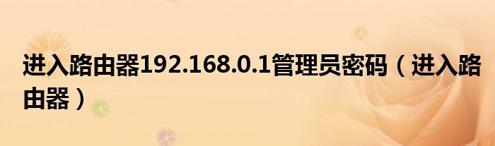 进入路由器192.168.0.1管理员密码(进入路由器)
