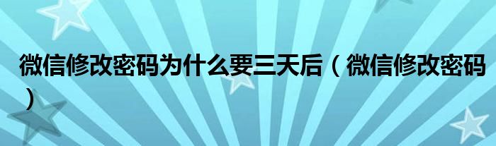 大家好,小晋来为大家解答以下问题,关于微信修改密码为什么要三天后,微信修改密码很多人还不知道,今天让我们一起来看看吧!