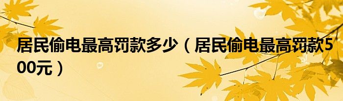 大家好,小晋来为大家解答以下问题,关于居民偷电最高罚款多少,居民偷电最高罚款500元很多人还不知道,今天让我们一起来看看吧!
