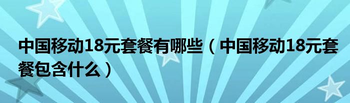 大家好,小晋来为大家解答以下问题,关于中国移动18元套餐有哪些,中国移动18元套餐包含什么很多人还不知道,今天让我们一起来看看吧!