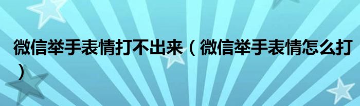 大家好,小晋来为大家解答以下问题,关于微信举手表情打不出来,微信举手表情怎么打很多人还不知道,今天让我们一起来看看吧!