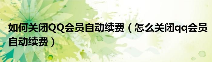 如何关闭QQ会员自动续费(怎么关闭qq会员自动续费)