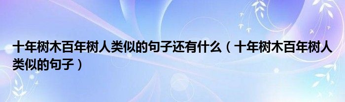大家好,小晋来为大家解答以下问题,关于十年树木百年树人类似的句子还有什么,十年树木百年树人类似的句子很多人还不知道,今天让我们一起来看看吧!
