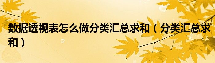 数据透视表怎么做分类汇总求和(分类汇总求和)