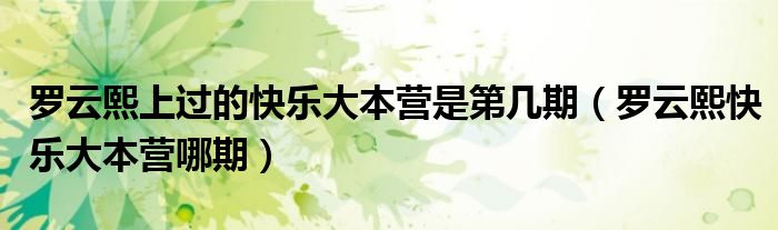 大家好,小晋来为大家解答以下问题,关于罗云熙上过的快乐大本营是第几期,罗云熙快乐大本营哪期很多人还不知道,今天让我们一起来看看吧!