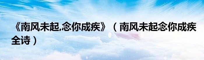 大家好,小晋来为大家解答以下问题,关于《南风未起,念你成疾》,南风未起念你成疾全诗很多人还不知道,今天让我们一起来看看吧!