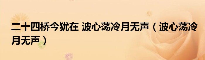 二十四桥今犹在 波心荡冷月无声(波心荡冷月无声)