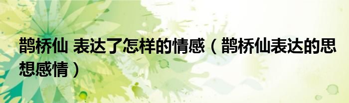 大家好,小晋来为大家解答以下问题,关于鹊桥仙 表达了怎样的情感,鹊桥仙表达的思想感情很多人还不知道,今天让我们一起来看看吧!