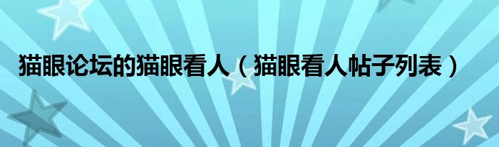 猫眼论坛的猫眼看人(猫眼看人帖子列表)