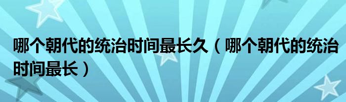 关于哪个朝代的统治时间最长久,哪个朝代的统治时间最长这个很多人还不知道,今天菲菲来为大家解答以上的问题,现在让我们一起来看看吧!