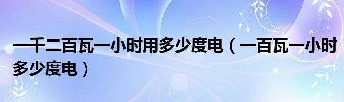 大家好,小晋来为大家解答以下问题,关于一千二百瓦一小时用多少度电,一百瓦一小时多少度电很多人还不知道,今天让我们一起来看看吧!