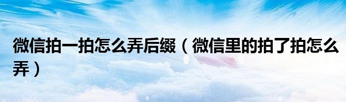 大家好,来宝来为大家解答以下问题,微信拍一拍怎么弄后缀,微信里的拍了拍怎么弄很多人还不知道,今天让我们一起来看看吧!
