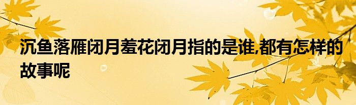 1、沉鱼指西施,落雁指王昭君,闭月指貂蝉,羞花指杨贵妃。