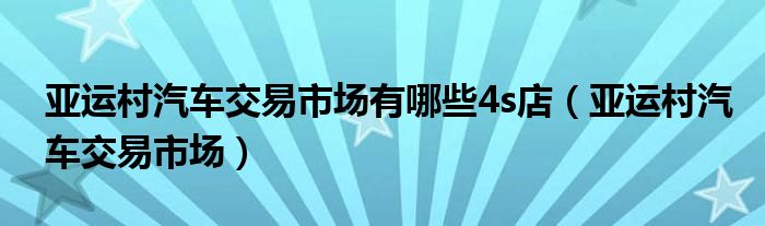 关于亚运村汽车交易市场有哪些4s店,亚运村汽车交易市场这个很多人还不知道,今天菲菲来为大家解答以上的问题,现在让我们一起来看看吧!