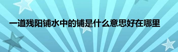 关于一道残阳铺水中的铺是什么意思好在哪里这个很多人还不知道,今天菲菲来为大家解答以上的问题,现在让我们一起来看看吧!