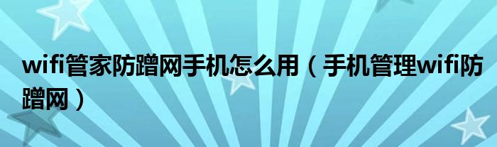 wifi管家防蹭网手机怎么用(手机管理wifi防蹭网)