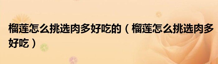 大家好,小晋来为大家解答以下问题,关于榴莲怎么挑选肉多好吃的,榴莲怎么挑选肉多好吃很多人还不知道,今天让我们一起来看看吧!