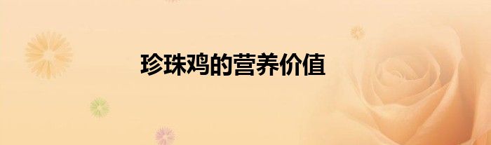 关于珍珠鸡的营养价值这个很多人还不知道,今天菲菲来为大家解答以上的问题,现在让我们一起来看看吧!