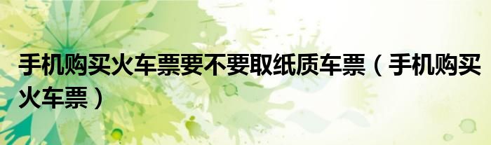 手机购买火车票要不要取纸质车票(手机购买火车票)