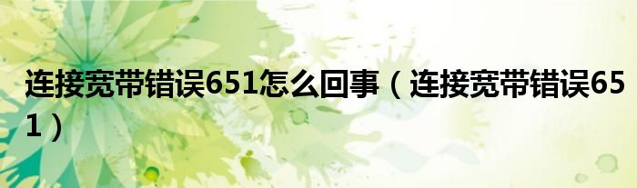 大家好,小晋来为大家解答以下问题,关于连接宽带错误651怎么回事,连接宽带错误651很多人还不知道,今天让我们一起来看看吧!