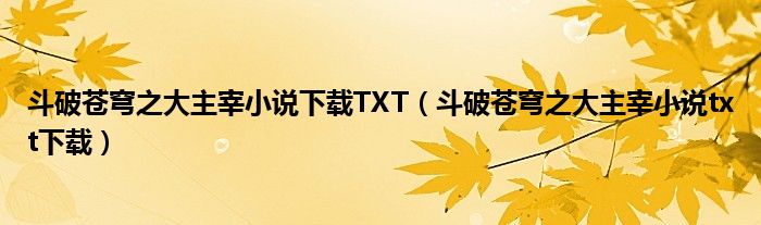 斗破苍穹之大主宰小说下载TXT(斗破苍穹之大主宰小说txt下载)