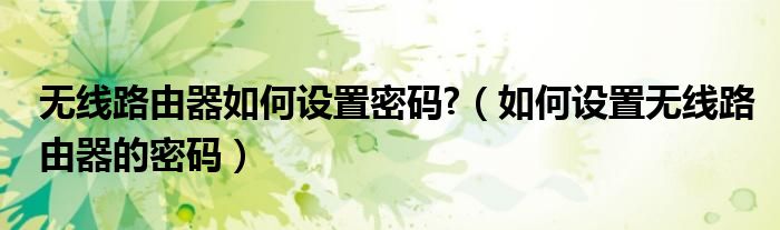 无线路由器如何设置密码?(如何设置无线路由器的密码)