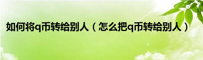 大家好,小晋来为大家解答以下问题,关于如何将q币转给别人,怎么把q币转给别人很多人还不知道,今天让我们一起来看看吧!