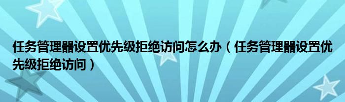 关于任务管理器设置优先级拒绝访问怎么办,任务管理器设置优先级拒绝访问这个很多人还不知道,今天菲菲来为大家解答以上的问题,现在让我们一起来看看吧!
