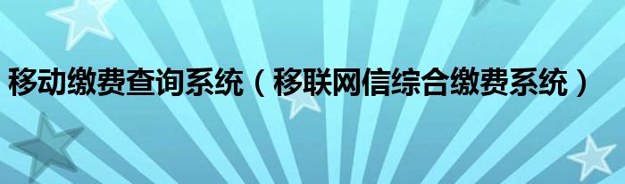关于移动缴费查询系统,移联网信综合缴费系统这个很多人还不知道,今天菲菲来为大家解答以上的问题,现在让我们一起来看看吧!