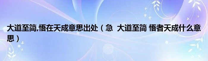 关于大道至简,悟在天成意思出处,急 大道至简 悟者天成什么意思这个很多人还不知道,今天菲菲来为大家解答以上的问题,现在让我们一起来看看吧!