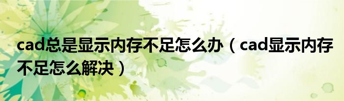 关于cad总是显示内存不足怎么办,cad显示内存不足怎么解决这个很多人还不知道,今天菲菲来为大家解答以上的问题,现在让我们一起来看看吧!