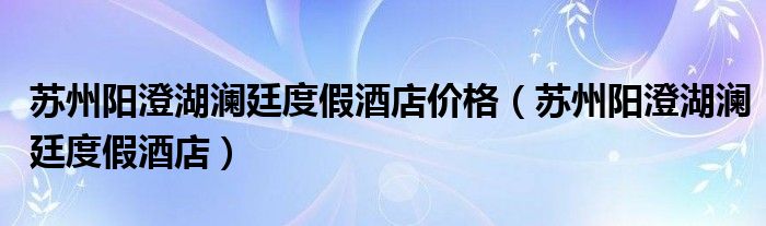 关于苏州阳澄湖澜廷度假酒店价格,苏州阳澄湖澜廷度假酒店这个很多人还不知道,今天菲菲来为大家解答以上的问题,现在让我们一起来看看吧!
