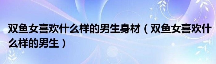 关于双鱼女喜欢什么样的男生身材,双鱼女喜欢什么样的男生这个很多人还不知道,今天菲菲来为大家解答以上的问题,现在让我们一起来看看吧!