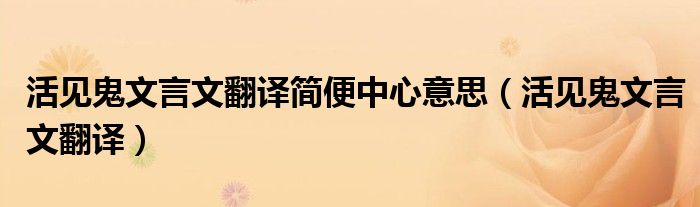 关于活见鬼文言文翻译简便中心意思,活见鬼文言文翻译这个很多人还不知道,今天菲菲来为大家解答以上的问题,现在让我们一起来看看吧!