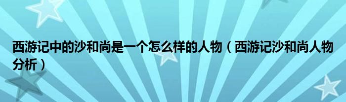 关于西游记中的沙和尚是一个怎么样的人物,西游记沙和尚人物分析这个很多人还不知道,今天菲菲来为大家解答以上的问题,现在让我们一起来看看吧!